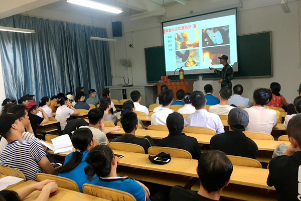 2019年9月25日下午,南宁学院后勤基建处膳食管理科组织南宁学院食堂从业人员,开展食堂专项消防安全知识培训与演练活动。本次培训主要内容针对食堂如何预防火灾、如何报警、如何正确扑灭油锅引起的火灾,以及现场学习使用灭火器灭火与火场逃生的技巧。