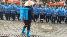 八、坚持日常消毒工作不松懈。保洁部及时把集中配制好的消毒液配发到每个清洁岗位,由每个岗位清洁工做好日常清洁消毒工作