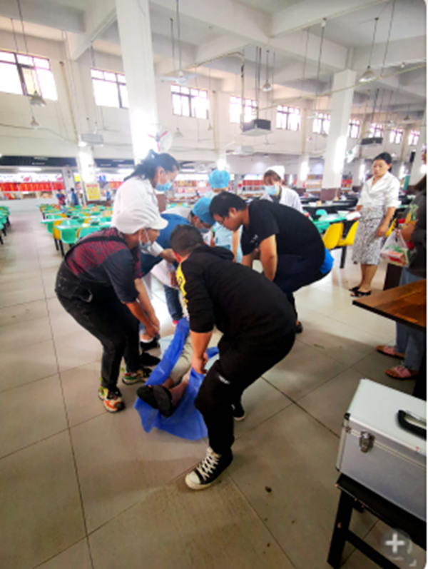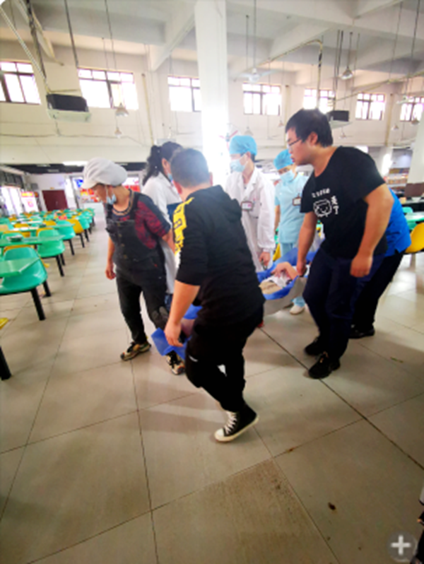 在这期间,三楼食堂的一名男性工作人员发现情况异常后主动上前询问并积极提供帮助。他不仅关心发病学生的情况,还提前移开食堂的餐桌餐椅,为患者疏通急救通道;在120医护人员需要帮助搬抬患者下楼时,他自己积极施予援手,并招呼更多的食堂员工一起,合力将患者稳稳地抬下至一楼,转上急救车,极大地减轻了医护人员的体力负担。在场的所有医务人员都对提供帮助的食堂员工们表示了由衷的感谢。