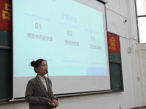 为保证校园食品安全,后勤保障与基建管理处于2022年3月8日下午,组织全校餐饮从业人员在敷文园A-108教室举行2022年春季食品安全培训会。培训的主要内容是关于餐饮生产中的安全风险来源与控制。