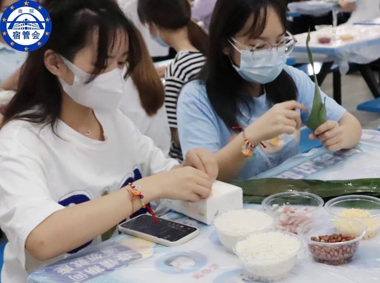 2022年6月3日——6月5日,由南宁学院商学院、校团委主办,学校自营食堂承办的“南院系端午,商院满粽香”、“情系端午,粽叶飘香”系列主题庆祝活动在卧龙岗第一学生食堂2楼举行,各学院师生代表参加了活动。本次活动的主要内容是包粽子,在自营食堂的工作人员的指导下,参加活动的同学们学会了如包粽子,吃上了自己动手包的粽子。