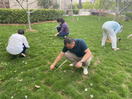 党员同志们以非常严肃认真的态度,全身心投入到劳动教育活动当中。认真向物业人员了解草地养护的相关知识,了解了杂草生长的周期性,知道了如何除草能保证杂草在很长的时间内不再重新长起来,知道了通过什么样的方式既清除了杂草又不伤害马来拉草。经过近两个小时的奋战,后勤保障与基建管理处党支部的党员同志们胜利完成预定目标,清理了图书馆东面临湖草地上的全部杂草,为校园绿化环境的建设出了一份力。(后勤保障与基建管理处党支部供稿 文/图 黎明)