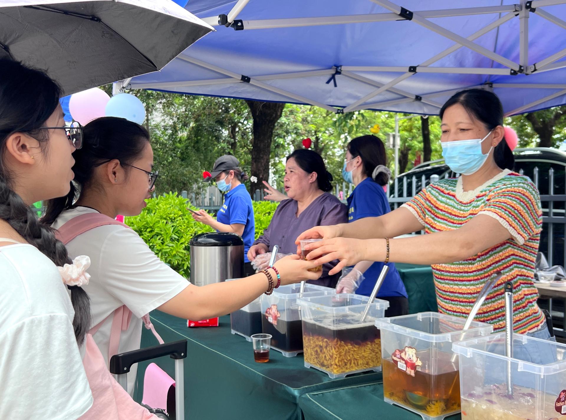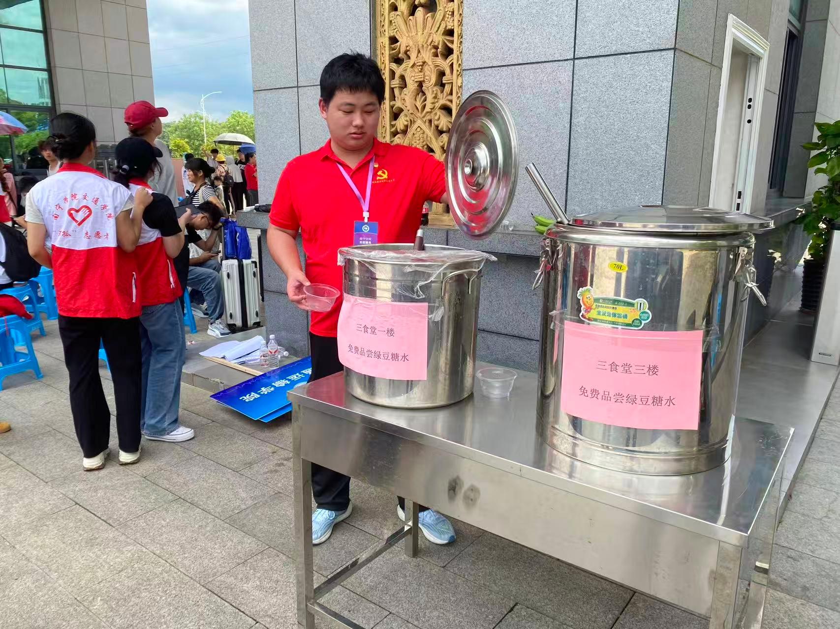各食堂均设立咨询点,为新生介绍就餐支付方式、食堂开放时间及菜品营养搭配等信息。活动期间,第三学生食堂专门为学生家长、南门迎新志愿者、新生等人员免费提供绿豆糖水和冰镇饮料。